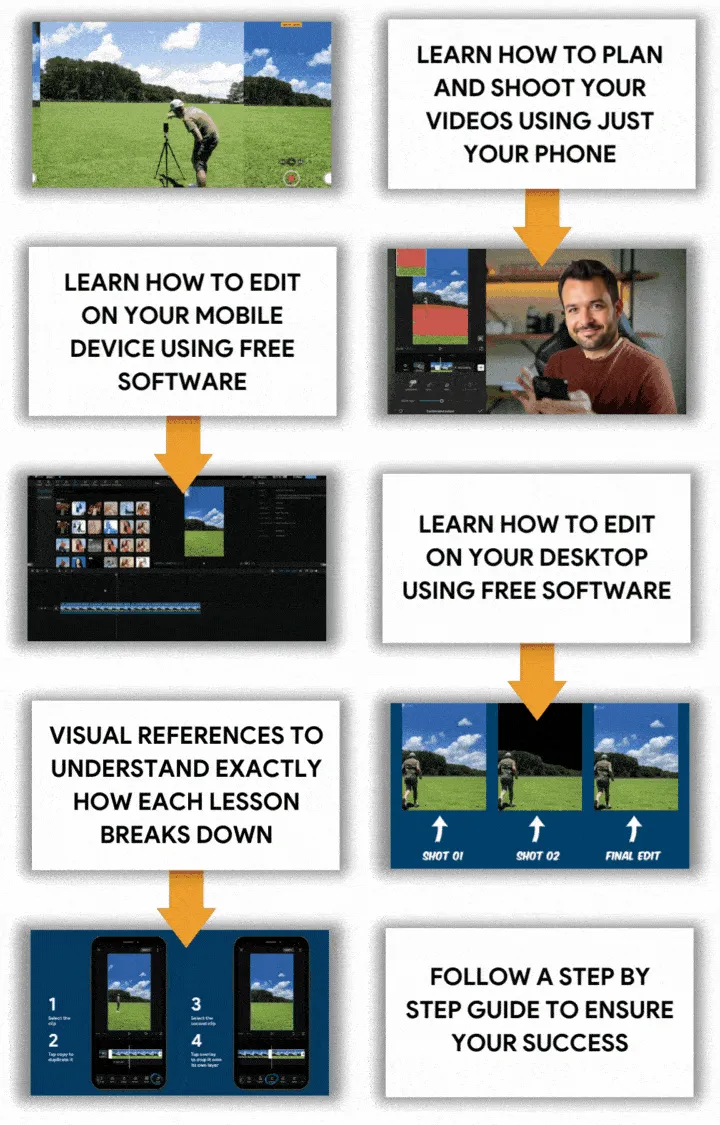 The great thing about this program is that it is curated for using only your mobile device and a simple tripod. So, you will be ready to start right away! Any gear beyond that is just a bonus, which I include gear recommendations for all budgets! If you prefer editing on desktop, don't worry, I got you there too!